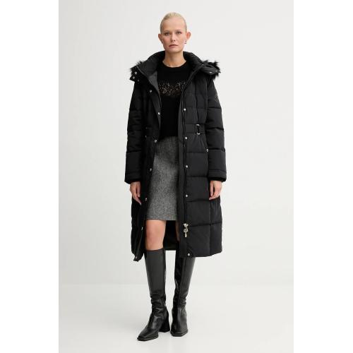 - Geaca lunga cu umplutura din pene si puf natural si gluga cu blanita artificiala, detasabila.