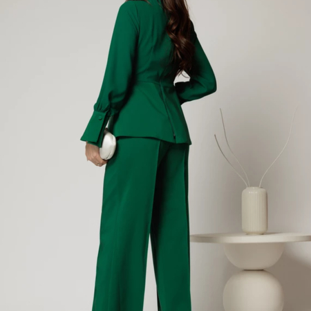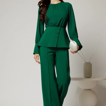 • Costum dama verde (bluză peplum si pantaloni) – InPuff