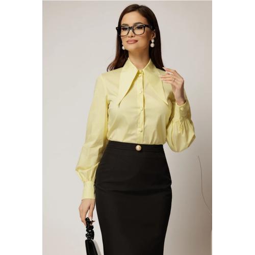 - Cămașă galbena din poplin, cu croi cambrat, guler ascuțit și închidere cu nasturi îmbrăcați.