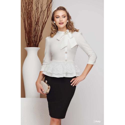 - Cu ce o asortezi: pentru un look office, alege fuste sau pantaloni clasici, si pantofi cu toc de max.5 cm. La evenimente, asorteaz-o cu costume elegante-clasice, pantofi cu toc înalt și poșete de mici dimensiuni.