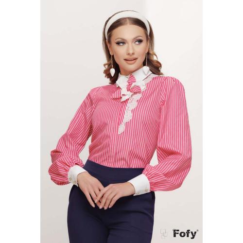 - Cămașă roșu ciclamen cu dungi din bumbac elastic, accesorizată cu floare detasabilă.