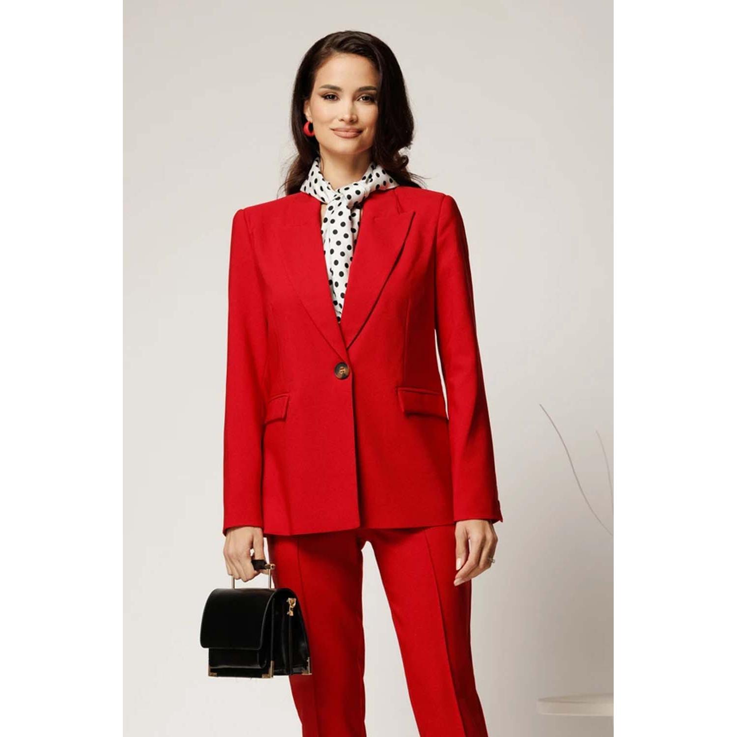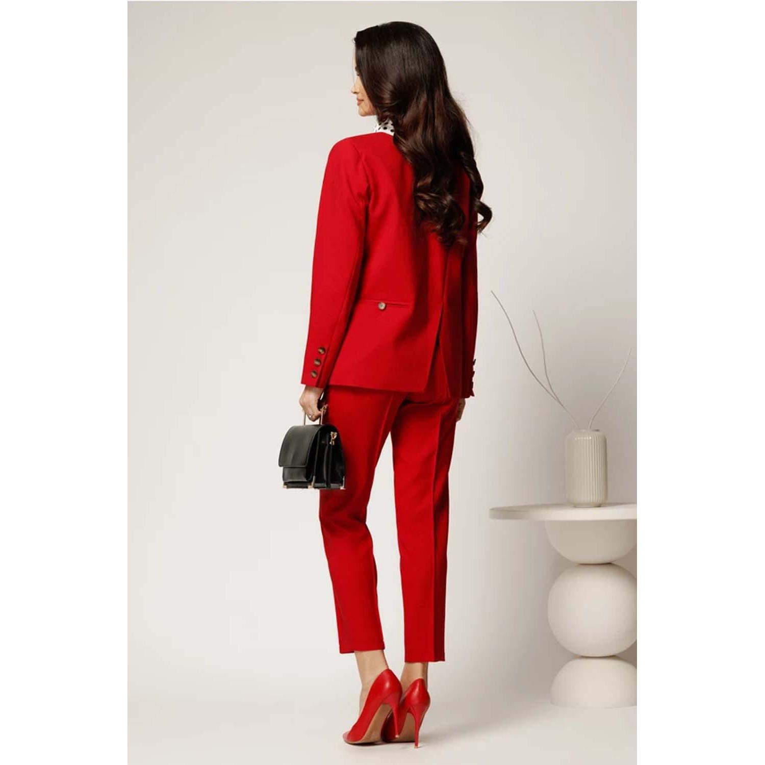 - Compleu rosu cu pantaloni si sacou, din stofa.