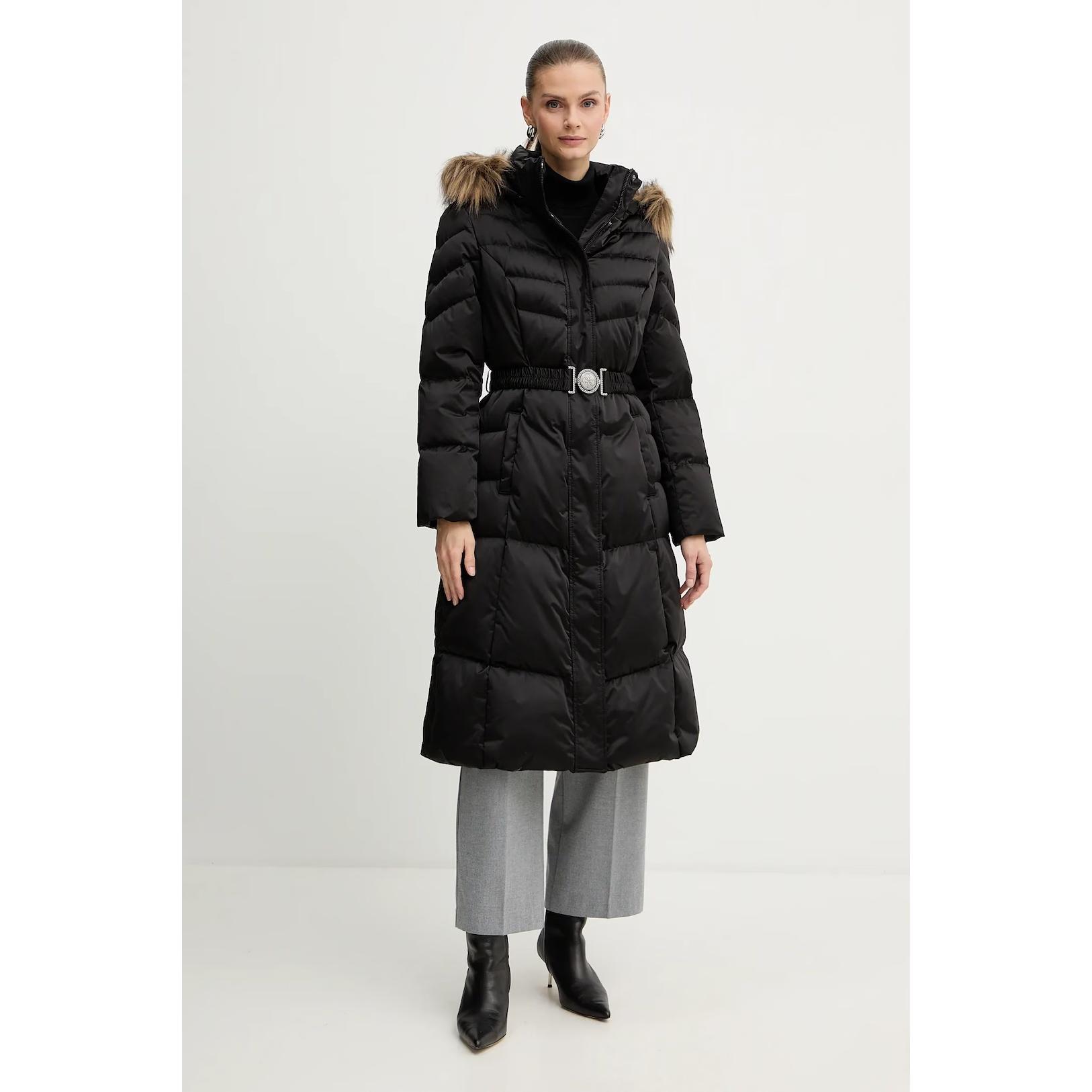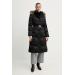 • Geaca lunga cu umplutura din pene si puf natural si gluga cu blanita artificiala, detasabila.