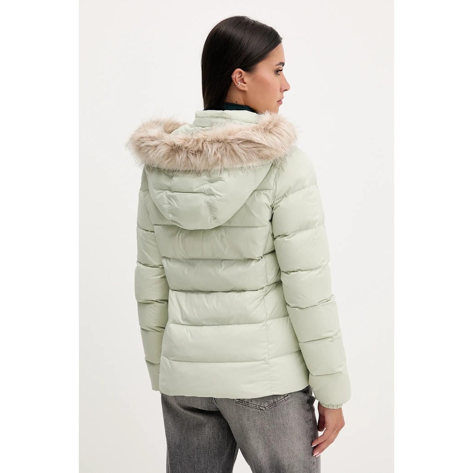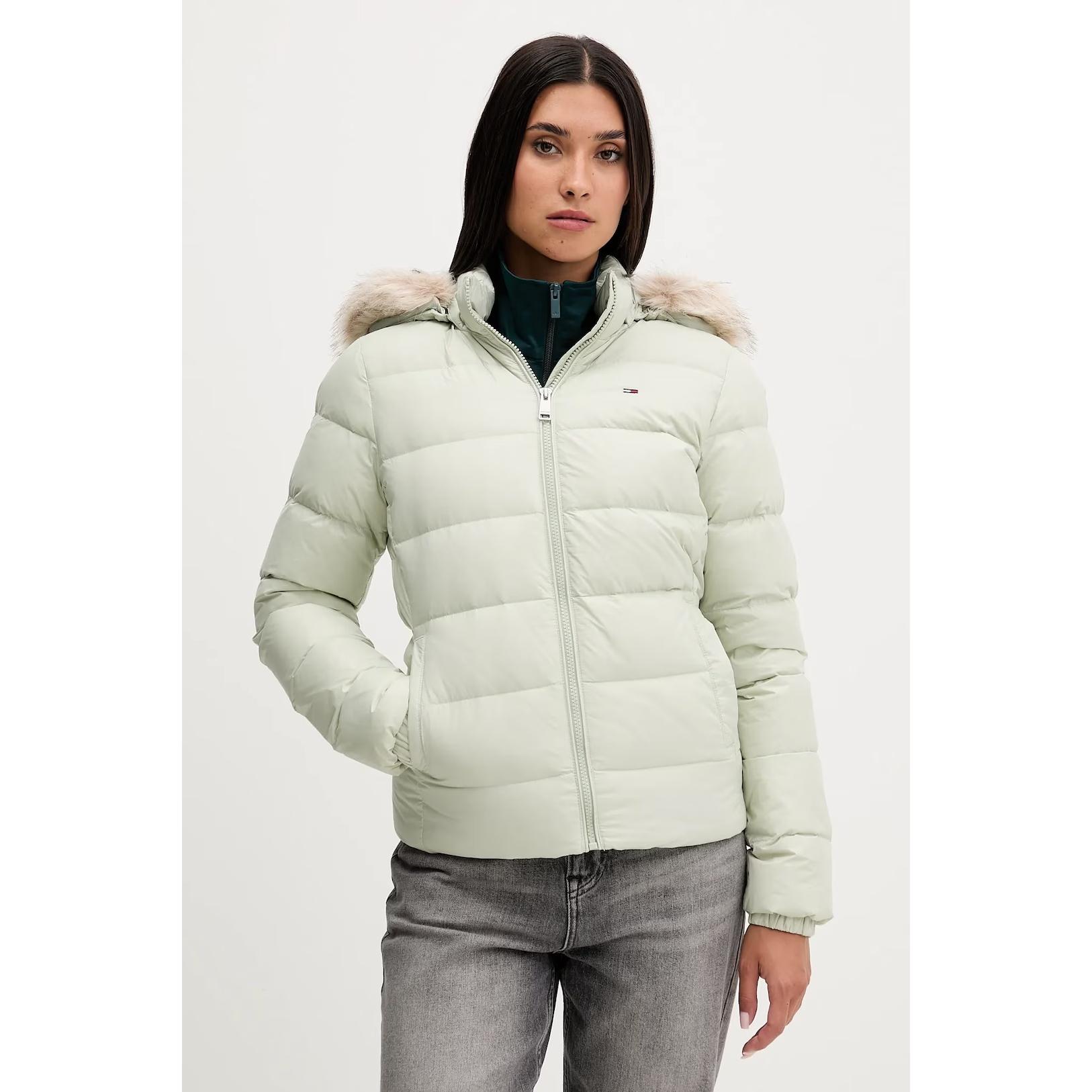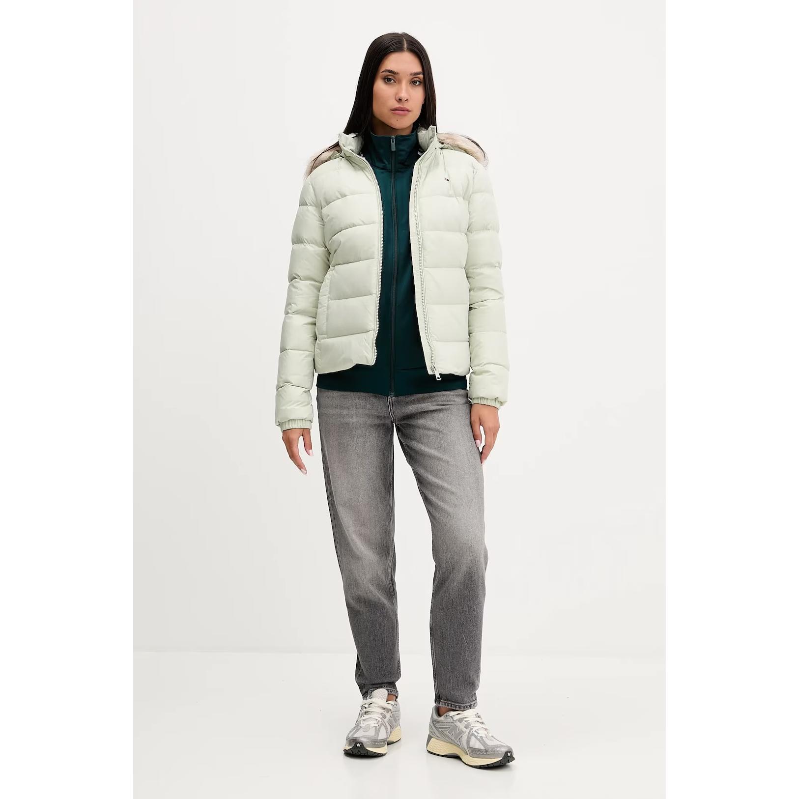 - Geaca vernil cu puf, model cu gluga detașabilă.