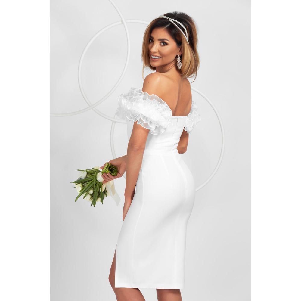 - Cum o porți: • sandale nude + cercei perlă + clutch mini (civil chic) • stiletto champagne + păr prins sleek + brățară fină (romantic modern) • sacou alb pe umeri + pantofi ivoire + buchet simplu (Vogue bride energy).