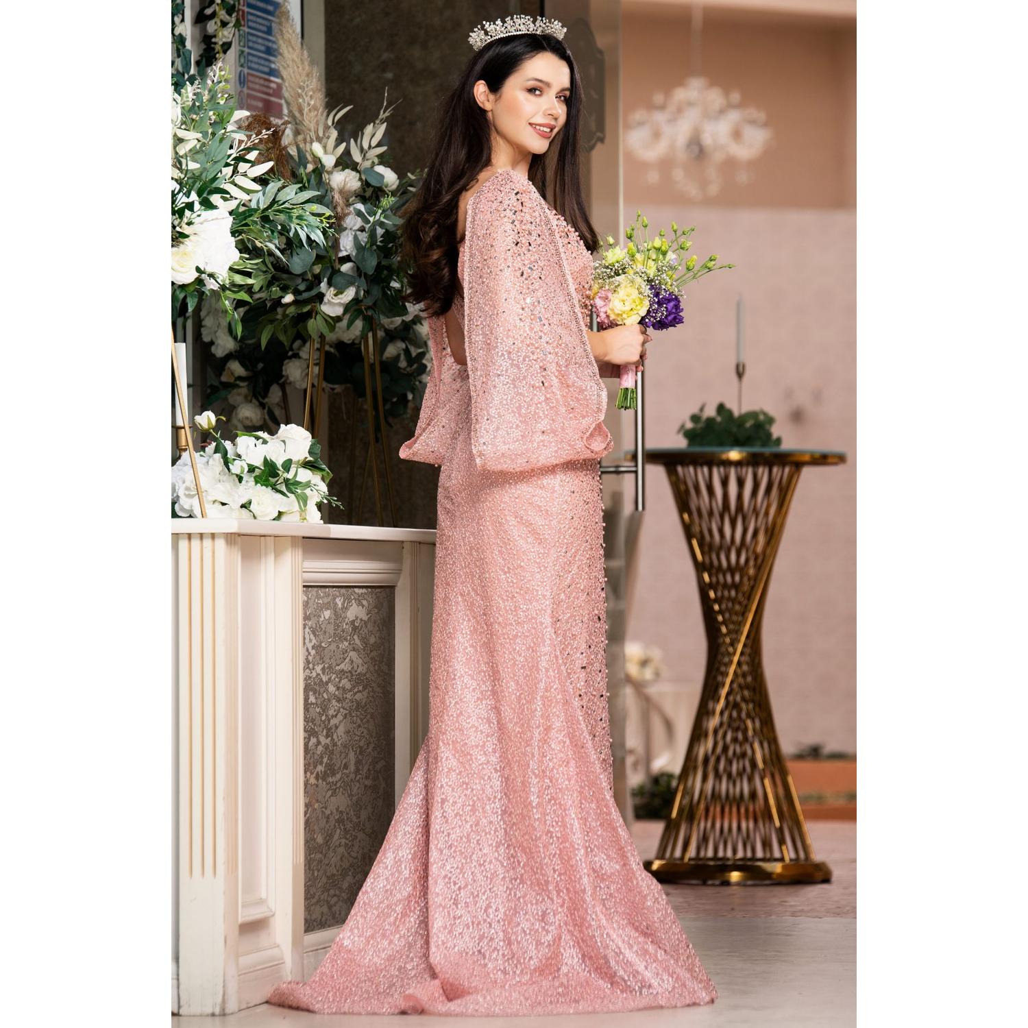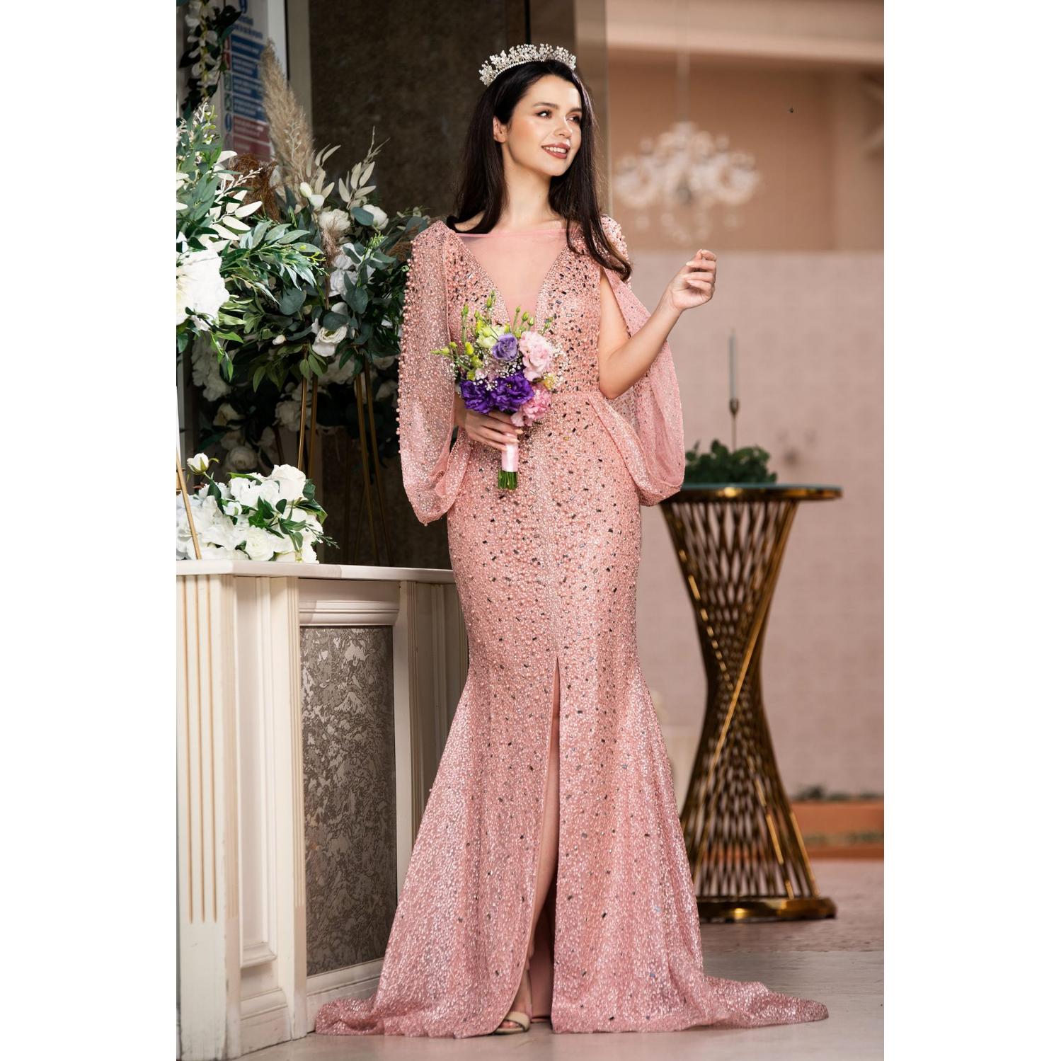 • Rochie lungă de ocazie cu perle și pietre decorative – o apariție couture, cu strălucire rafinată și eleganță regală, creată pentru momente memorabile.